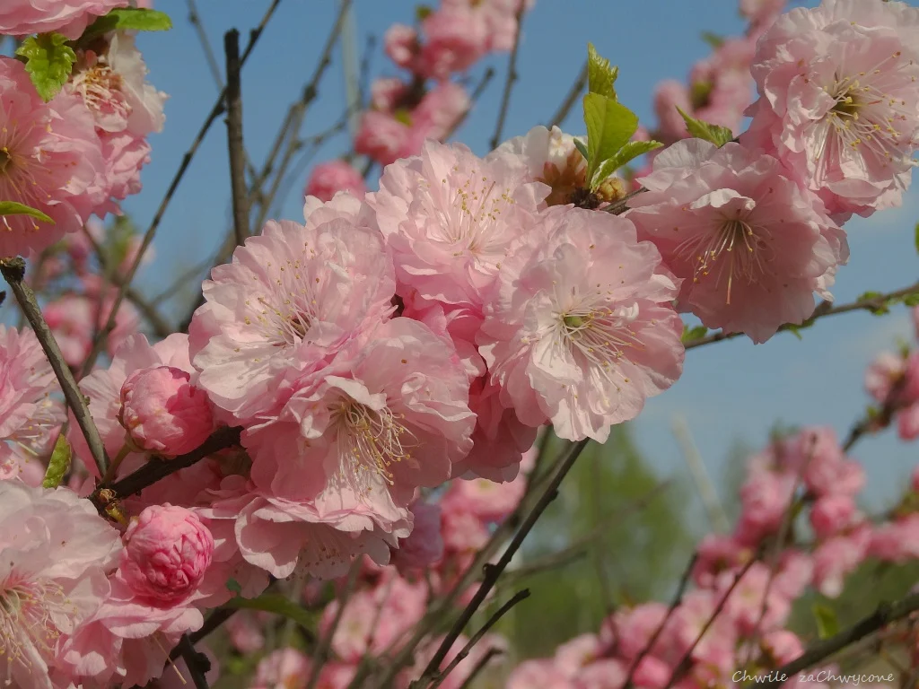 | Migdałowiec trójklapowy, migdałek trójklapowy (Prunus triloba Lindl.) - kwiaty pełne, przypominające różyczki o średnicy do 3,5 cm. |